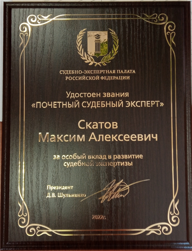 ⦁ почетный судебный эксперт Судебно-экспертной палаты Российской Федерации